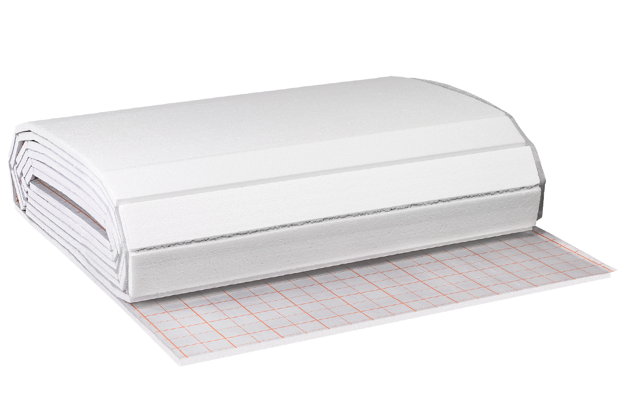 Einsatzbereich: Trittschalldämmung mit aufkaschierter Bändchengewebefolie in Fußbodenheizungssystemen, unter schwimmenden Estrichen, für normale Nutzlasten.
